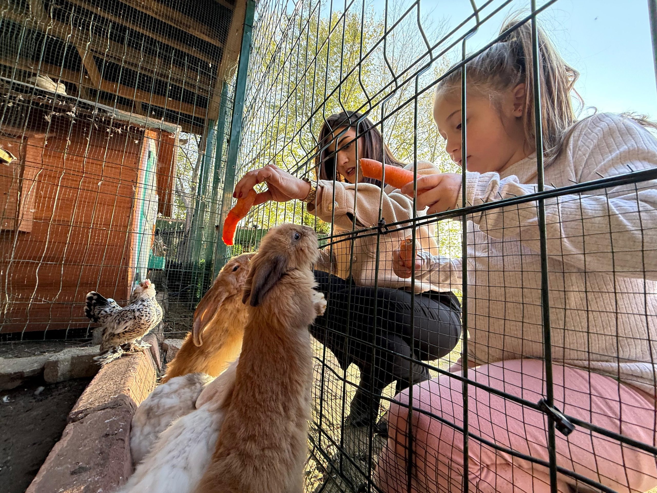Merkezde bulunan tavşanların, çocukların elinden havuç yeme anları da görenlerin yüzlerinden tebessüm oluşturuyor. Havuç görünce dayanamayan tavşanlar, çocukların elinden beslenirken en tatlı hallerini sergiliyor. Keçiler özellikle ağaç yapraklarına dayanamazken, tavuklar ise mısır, buğday gibi yiyecekleri tüketiyor. Merkezde eğitim gören çocuklar ile hayvanların bir araya gelmesi ortaya renkli görüntüler çıkartıyor.
